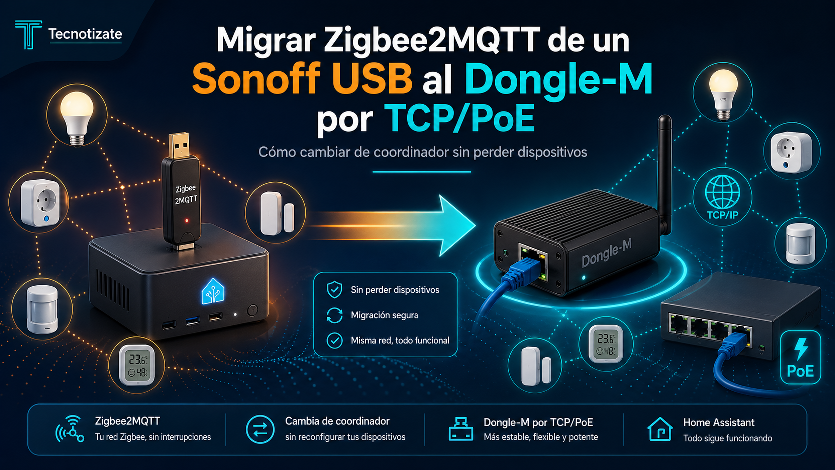 Uno de los puntos débiles habituales en instalaciones de Home Assistant con Zigbee2MQTT es la ubicación física del coordinador Zigbee. Cuando usamos un dongle USB conectado directamente al servidor, dependemos de que el servidor esté en una zona adecuada para la cobertura Zigbee y, además, podemos sufrir interferencias por USB 3.0, mala ubicación del equipo, […]